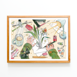 - pictură originală realizată în anul 2024, tehnică cerneală pe hârtie de acuarelă Hahnemühle 400 g/mp, dimensiuni 9,5 x 13,4 cm;
